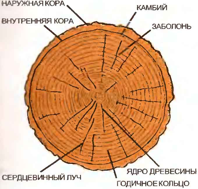 Анатомия дерева. Используемая часть ствола дерева находится за слоем наружной (или, как еще говорят, древесной) коры и двумя тонкими слоями жизнеобеспечивающей ткани. Один из этих слоев — внутренняя кора, известная также как лыко или луб, — доставляет питание дереву от листьев. Другой слой - производящий клетки камбий — часть дерева, где формируются его клетки и клетки наружной коры.